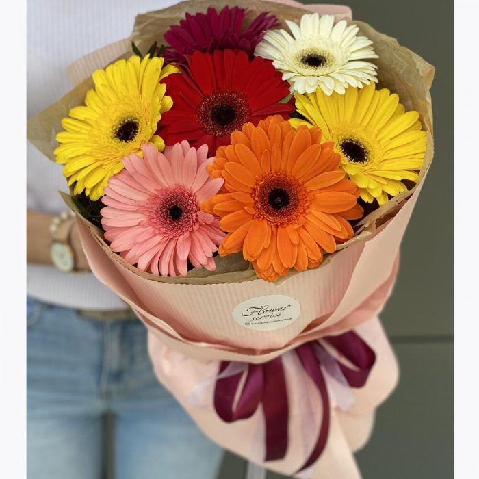 Букет из разноцветных гербер в оформлении!