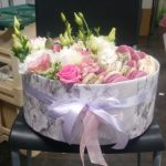 “Сиреневый туман” – композиция из гипсофилы в шляпной коробке