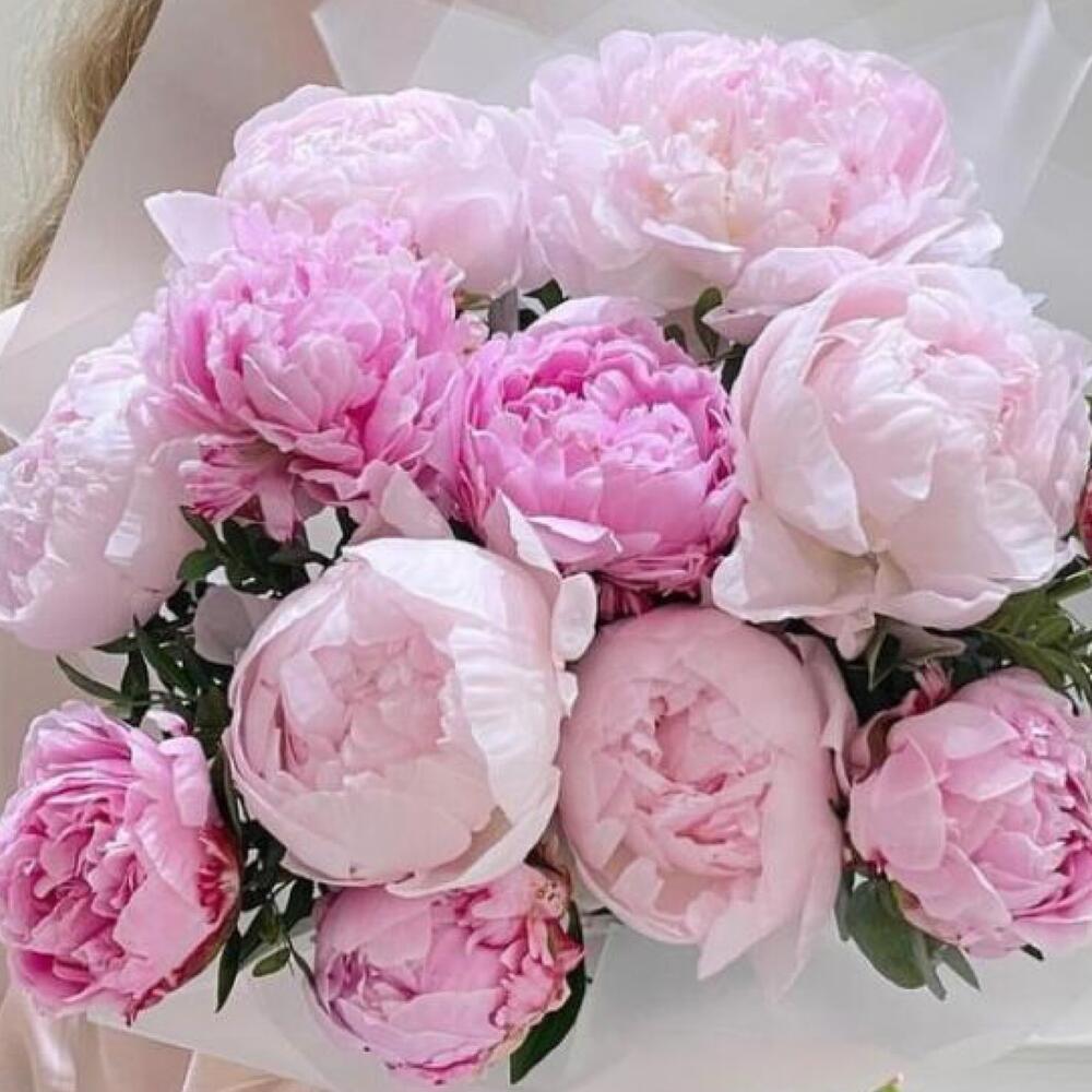 Пион розовый – 15 шт.Упаковка дизайнерская – 1 шт.Лента атласная – 2 шт.Открыточка с вашими пожеланиями – 1 шт.хорошее настроение – 100 шт.инструкция по уходу за цветами – 1 шт.коробка переноска – 1 шт.Кризал – 1 шт.
