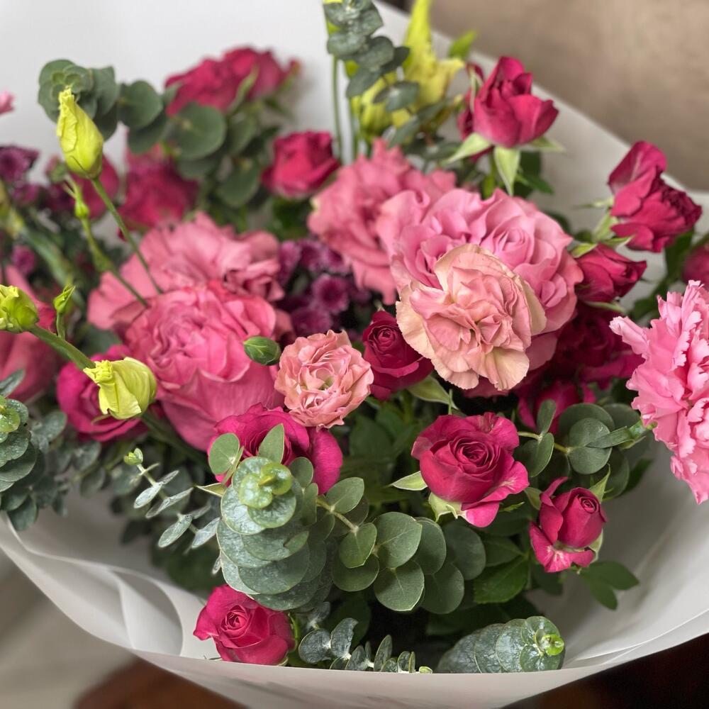 Категорий: Гвоздики, Кустовые розы, Лизиантусы, Розы, Хризантемы