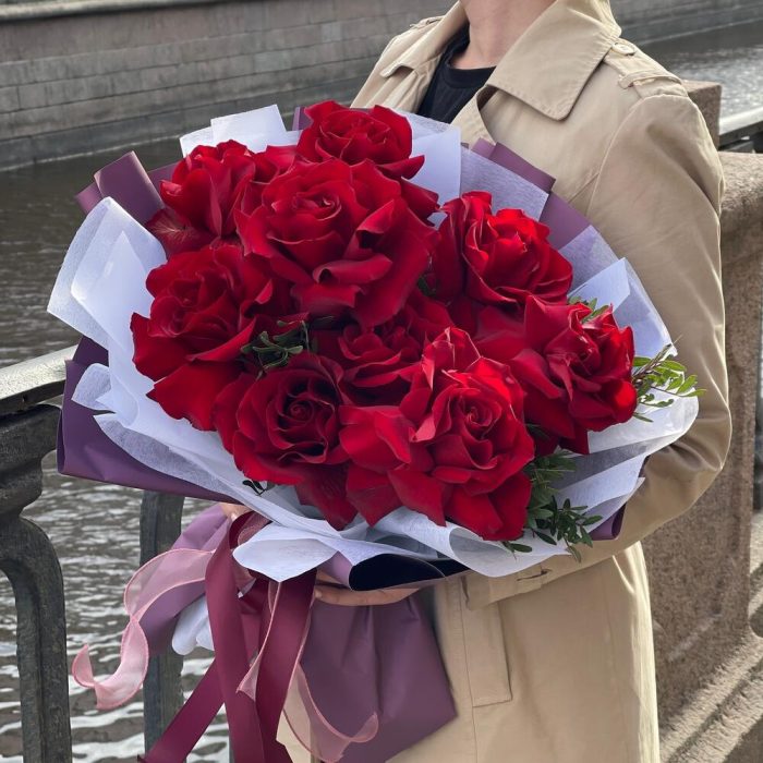 Букет алых роз Вишневый поцелуй M