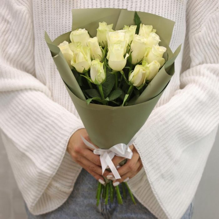 Букет из 15 белых роз 35-40 см (Кения) в стильной упаковке