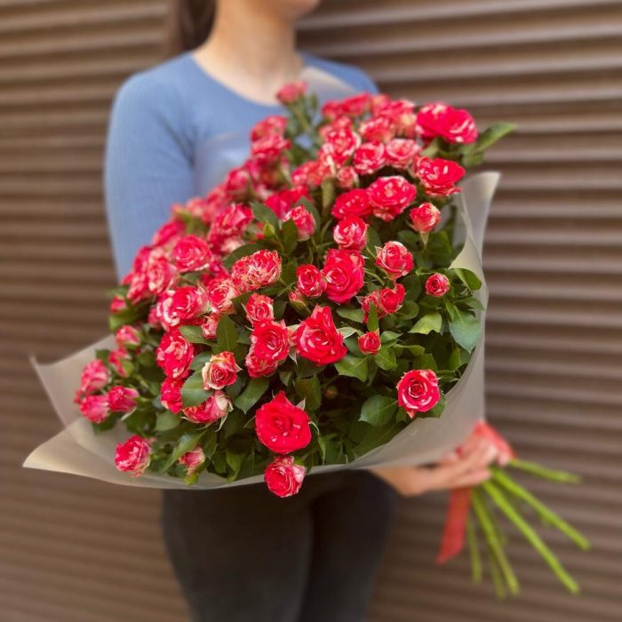 Лента – 2 шт.Пленка матовая – 3 шт.фаервокс роза кустовая – 15 шт.
