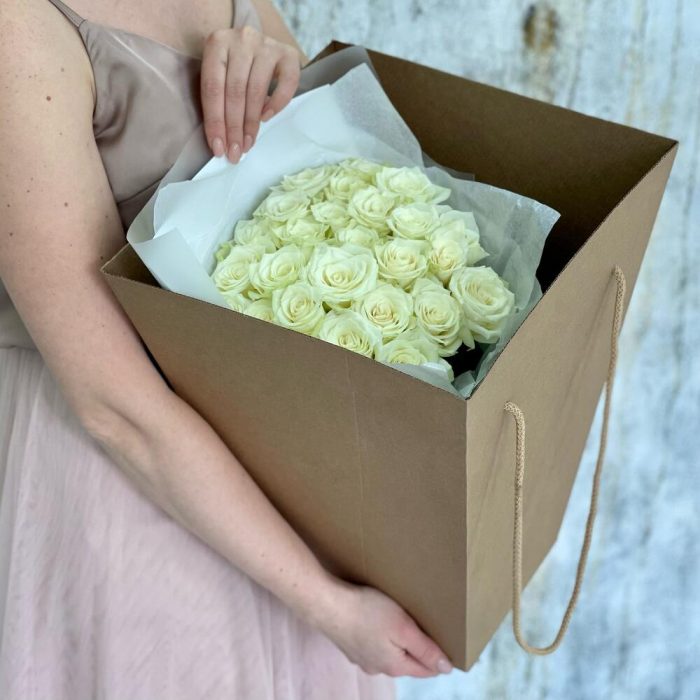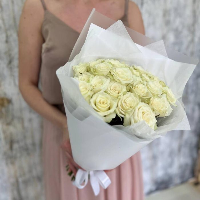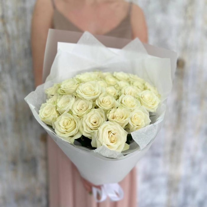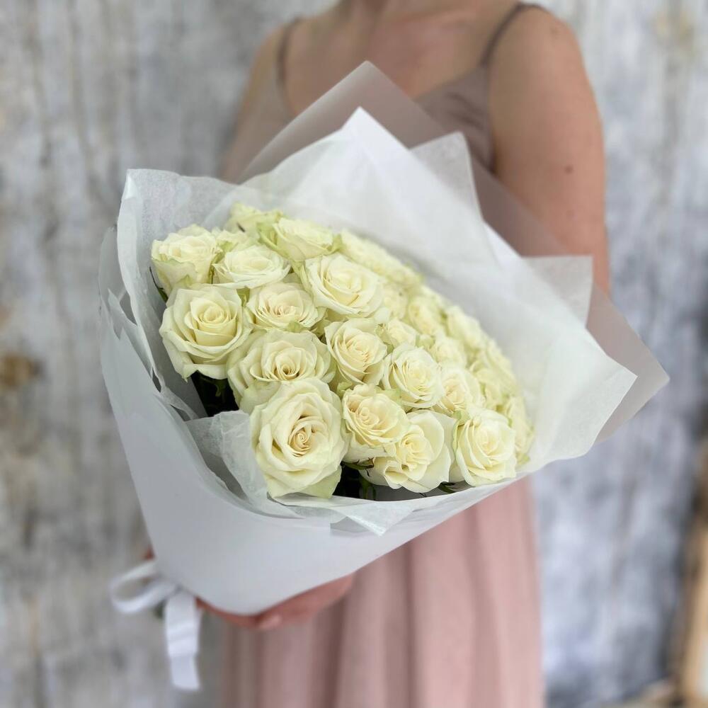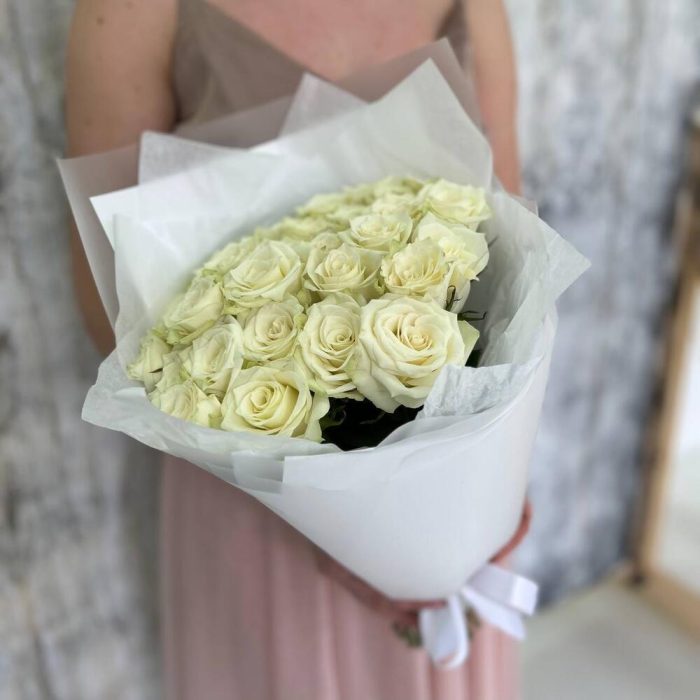 Букет из белых роз «Мои мечты» на день рождения, коллеге, сестре, подруге, маме