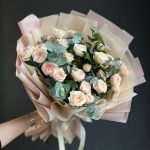 Букет из кустовой розы и эвкалипта