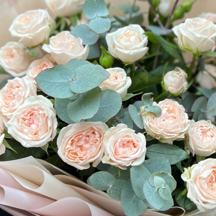 Букет из кустовой розы Павлова и эвкалипта