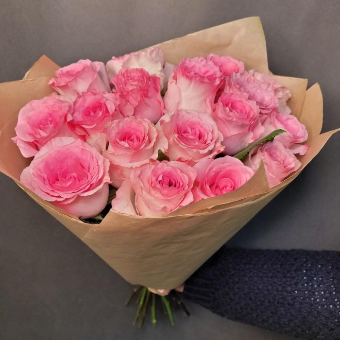 Роза Эквадор – 17 шт.Лента атласная – 1 шт.Крафт – 3 шт.