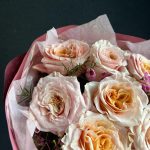 Букет с пионовидными розами и хамелациум