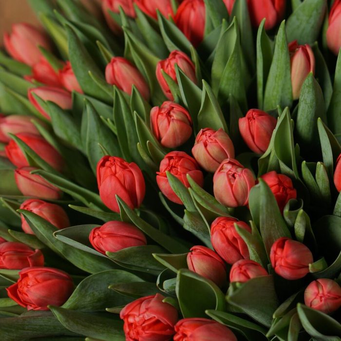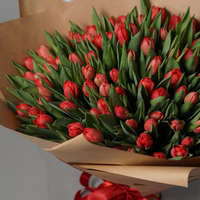Букет из 101 тюльпана стандарт микс в стильной упаковке
