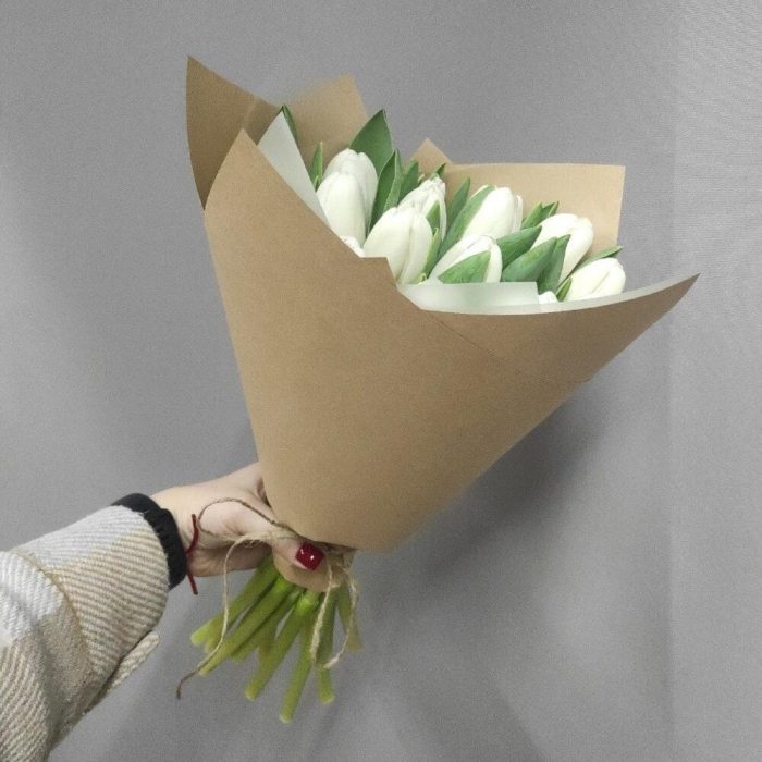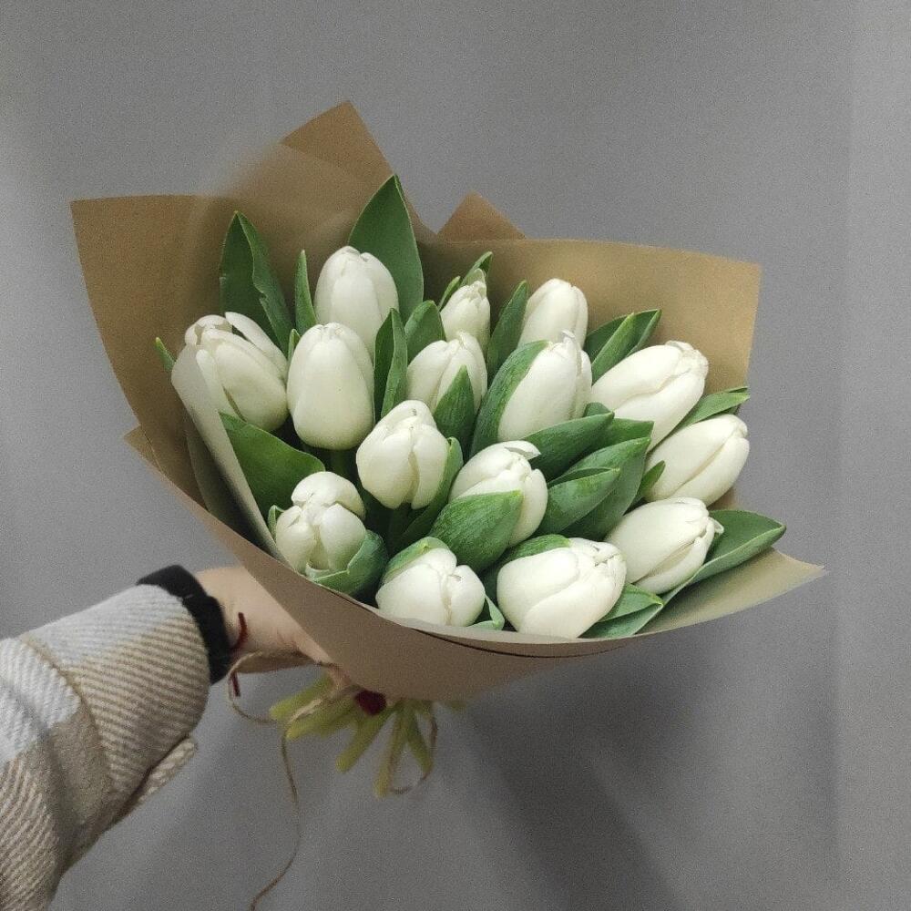 Букет из 15 белых тюльпанов